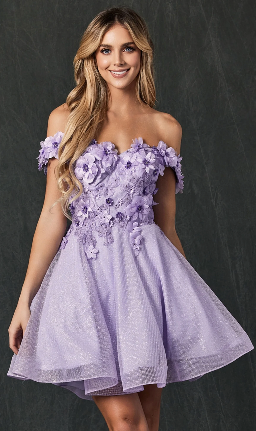 3D floral Short Off-Shoulder Dress